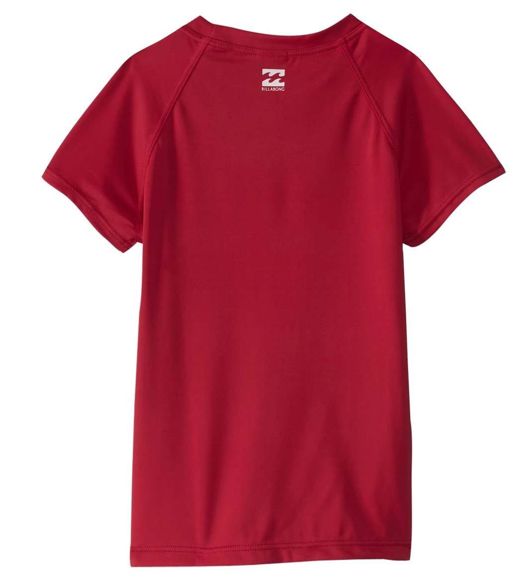 Bring a bold splash of rad-hot color to the surf with the Billabong Girls’ Sol Searcher Short Sleeve Rashguard. The essential swim top features short, raglan sleeves, a crew neckline and anchor graphic at the left chest. Â Â