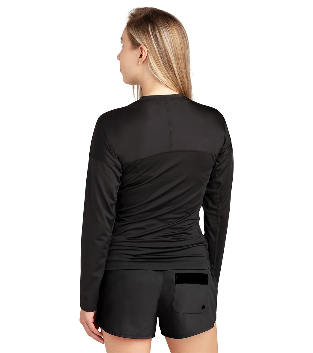 Extended session or morning fix, the Dakine Women’s Hd Snug Fit Crew Long Sleeve UPF 50 Rashguard delivers warm water paddling comfort. A snug fit and flatlock seams work together to prevent paddling rash, while a UPF 50+ rating means you can stay out longer. A boardshort connector keeps this versatile rashguard in place, and its recycled polyester build shares a commitment to a reduced footprint.