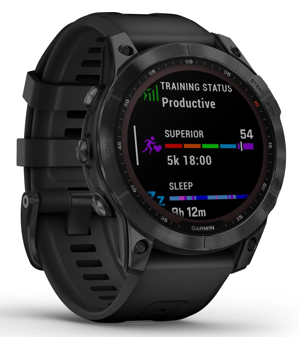 There are 7 days in a week. And the fenix 7 multisport GPS watch is built to go strong for all of them. Meet any athletic or outdoor challenge with cutting-edge training features, sports apps, 24/7 health and wellness monitoring and more. Use trusted button controls or a new touchscreen interface to access selections. Gain performance insights and metrics that help you manage your exertion and build stamina. Optimize recovery and overall wellness by monitoring heart rate, respiration, stress, sleep and more (this device is intended to give an estimation of your activity and metrics; it is not a medical device). GPS and outdoor navigation sensors guide your outings off the beaten path. And to complement your tamer days, connected features include smart notifications (when connected to a compatible smartphone) music storage and Garmin Pay contactless payments in supported countries and payment networks.