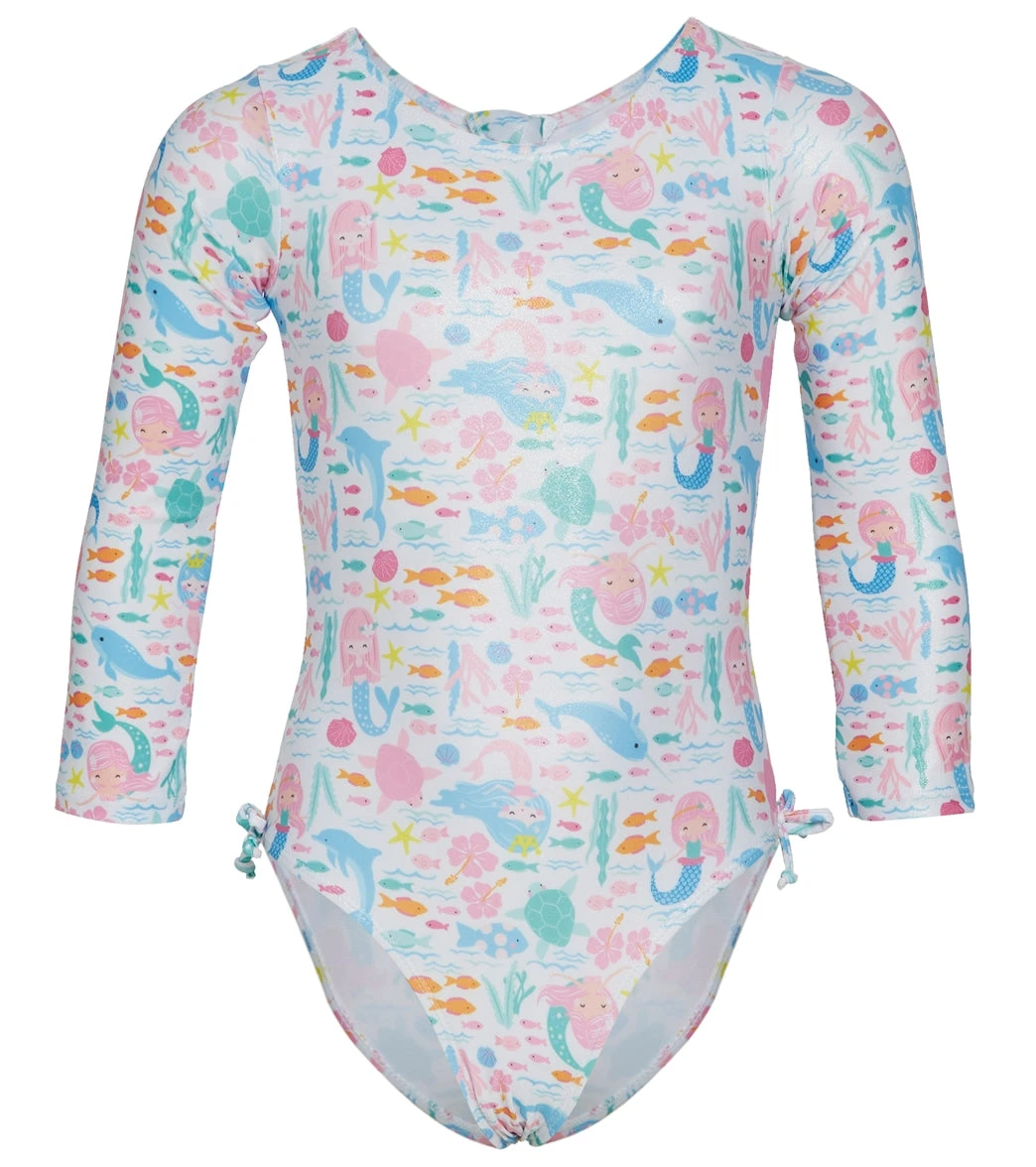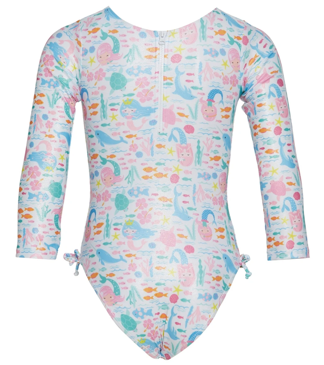 The Flap Happy Girls’ Fantasea Mermaids Charlie UPF 50+ Long Sleeve One Piece Swimsuit (Toddler, Little Kid) combines the effectiveness of a long sleeve rash guard with the functionality of a piece swimsuit, providing full coverage sun protection and comfort all in one.