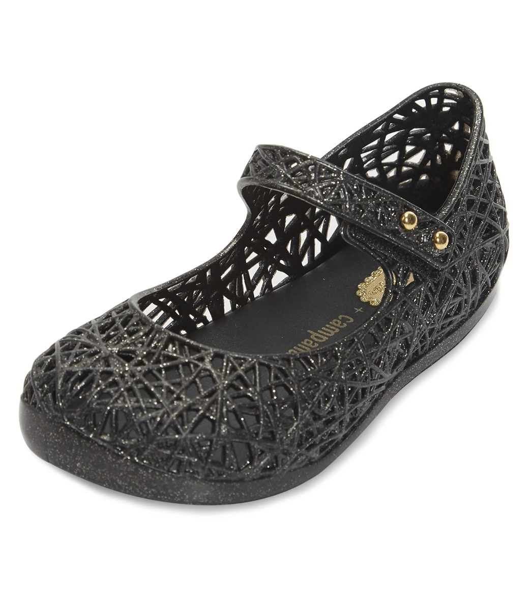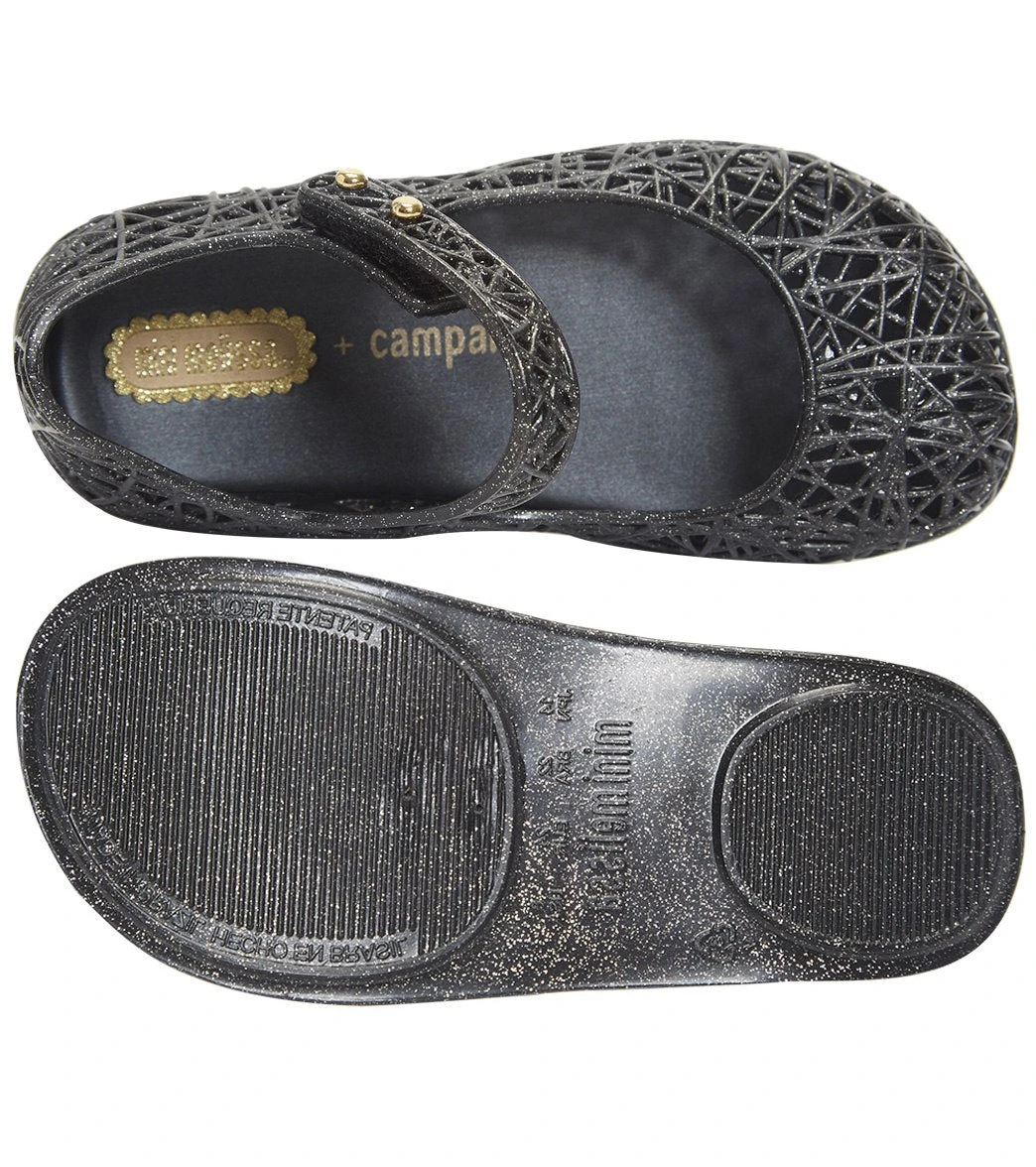 The Mel by Melissa Girls’ Mini Zig Zag Mary Jane is a sparkly, fruit-scented jelly flat with playful retro charm has a hook-and-loop strap for easy on and off. Â