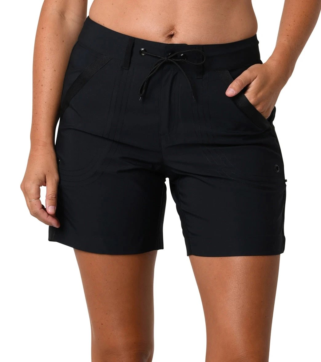 The Jantzen Women’s Solid Rolled Walking Short can be adjusted from a 7″ inseam to a 5″ inseam. Roll up the short and secure it with the side snap feature. The shorts also feature pockets so these shorts can be worn on and off the beach.