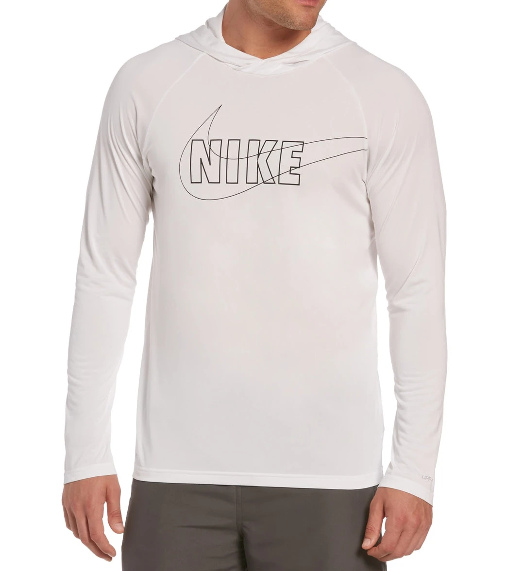 The Nike Men’s Outline Logo Long Sleeve Hooded Hydroguard features Dri-FIT technology that helps keep you dry and comfortable.