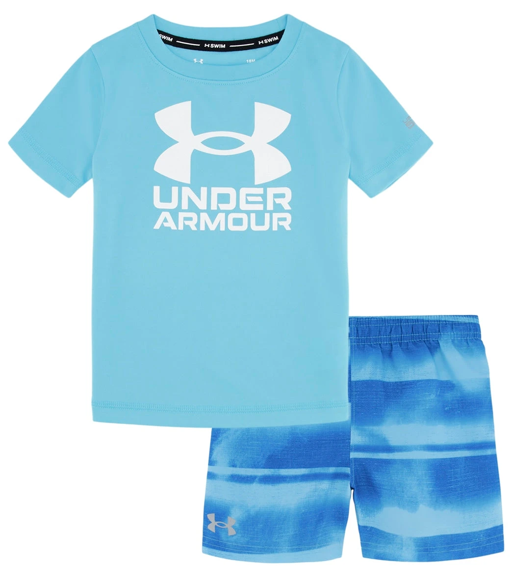 Stay fitted but free in the Under Armour Boys’ Gated Stripe Swim Set.